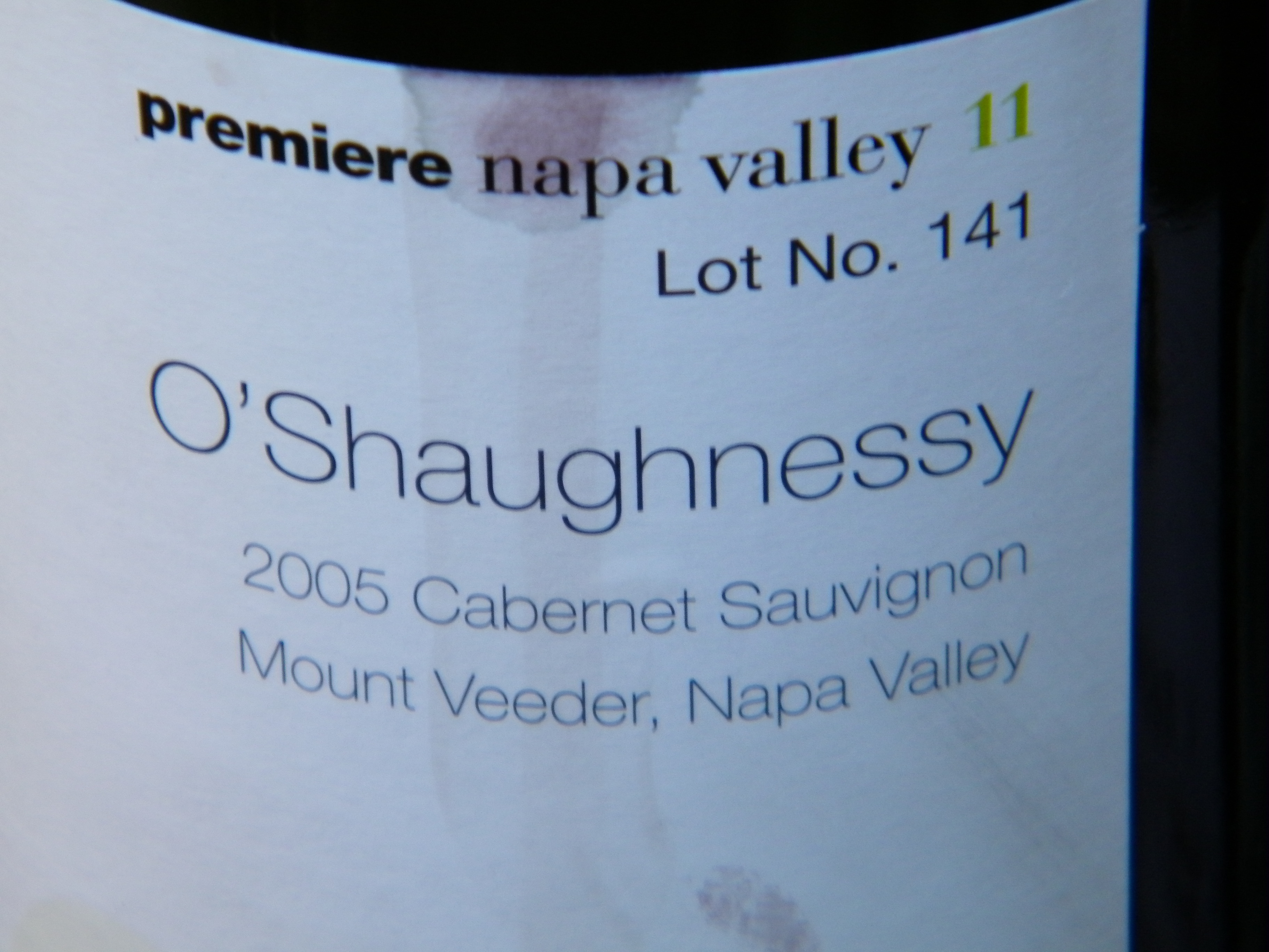 Premier Napa Valley 11, Lot No. 141-O’Shaughnessey Mount Veeder, Napa Valley Cabernet Sauvignon, 2005-No discussion of high end Napa Valley Cabs can occur without a mention of Premiere Napa Valley. It is one of the rarest wine brands in the world. Wines