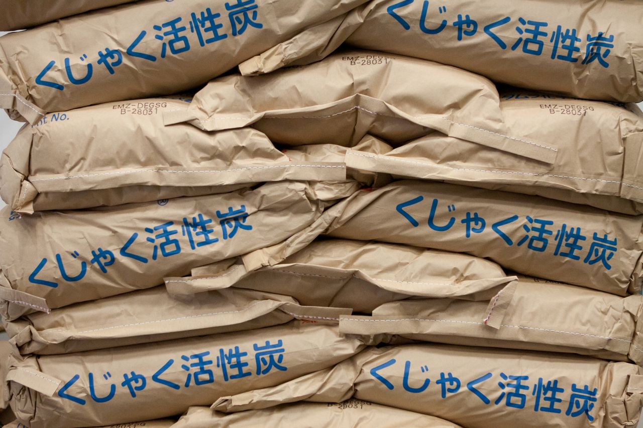 and the sake is squeezed out. If the sake is not squeezed out of the bags, but left to drip out in a “free run” process, that resultant sake is called shizuku. Gekkeikan uses one of the accordion-like devices and the lees and solids (spent grains) remaining after the press, called kasu, are